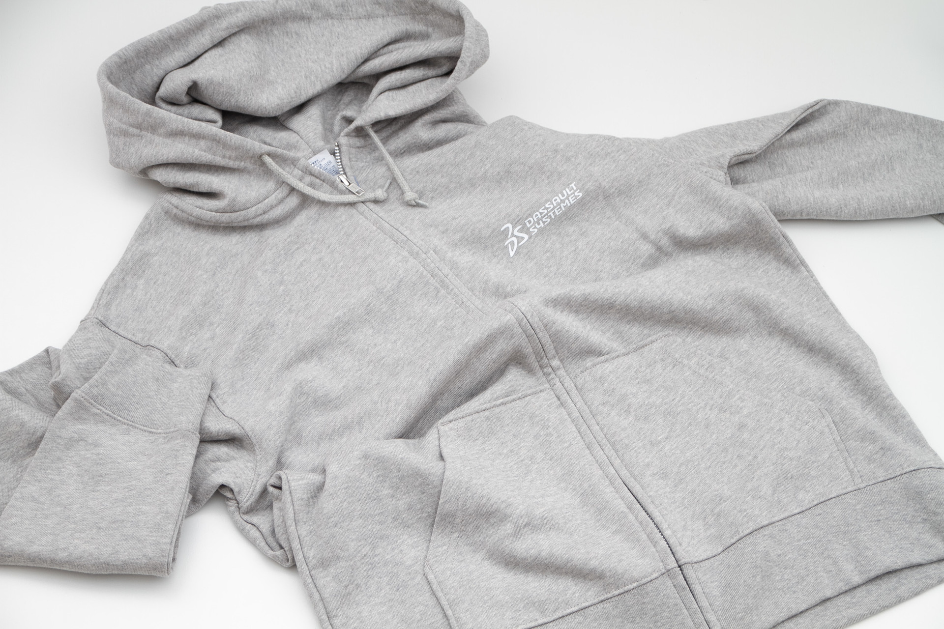 프랑스계 소프트웨어 판매기업 다쏘 시스템 코리아의 임직원 단체 후드 집업입니다. 활용도 높은 후드 집업을 부드러운 면 100% 소재로 제작했으며, 어디에나 잘 어울리는 그레이 컬러를 선택하여 직원들이 적극적으로 착용할 수 있도록 했습니다.